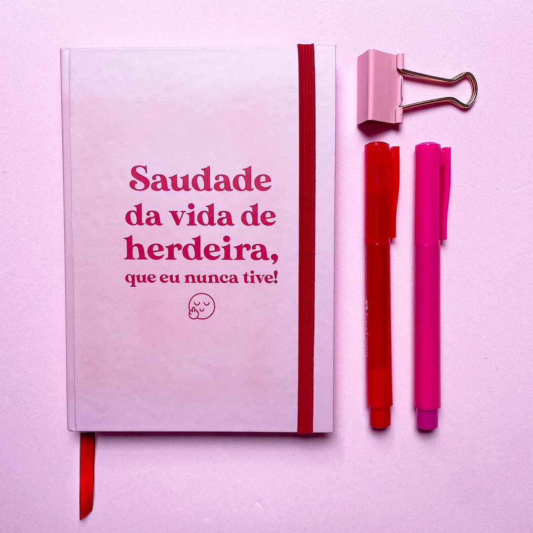 - Capa dura, com elástico e fita marcadora de página